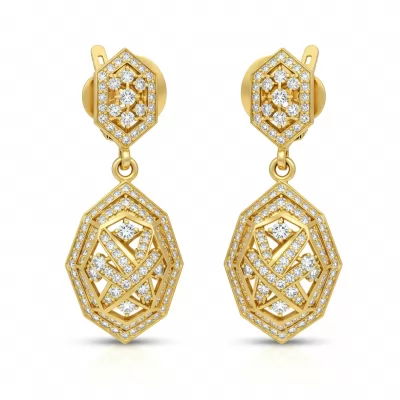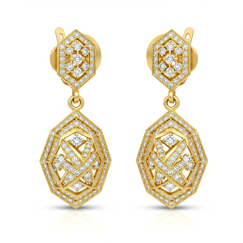 These striking heavy earrings are crafted in luminous 18KT yellow gold, designed to make an unforgettable statement on any occasion. They feature an intricate articulated structure completely blanketed in brilliant-cut diamonds, maximizing scintillation. The substantial net weight and flawless articulation ensure a dramatic drop and mesmerizing light reflection. Perfect for gala events and formal wear, these earrings embody exceptional craftsmanship and enduring elegance, offering a truly luxurious adornment.