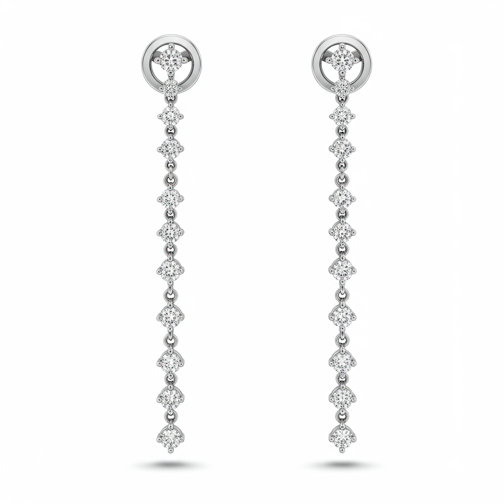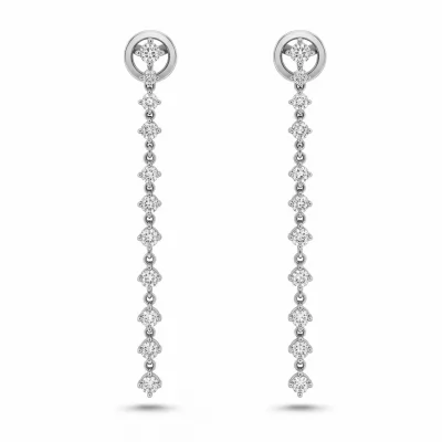 These magnificent long diamond earrings capture the essence of red-carpet glamour. Crafted in luminous 18KT white gold, the elegant linear silhouette cascades downward, bathing the wearer in light. Each earring is meticulously paved with brilliant VVS round diamonds, offering unparalleled scintillation. This design delivers sophisticated movement and an enduring statement of luxury, making them the ultimate accessory for grand occasions.