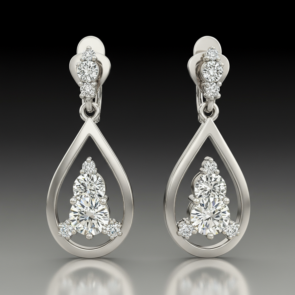 These exquisite original silver earrings are meticulously crafted in highly polished 18KT white gold, designed to capture and reflect light with every movement. Featuring a sophisticated cascade of brilliant VVS round diamonds, they embody effortless sophistication and timeless elegance. The articulated geometric drop design ensures a captivating presence, perfect for formal occasions or elevating daily attire. This pair represents the pinnacle of modern luxury jewelry design, combining supreme craftsmanship with dazzling brilliance.
