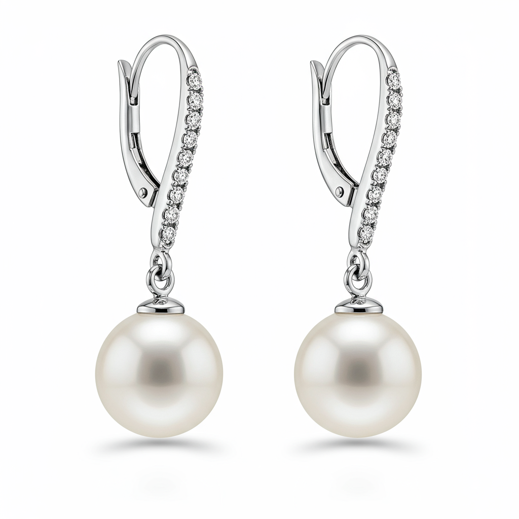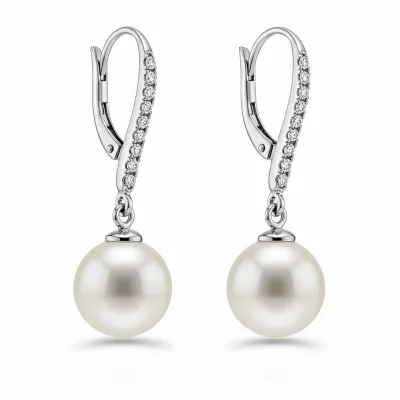These exquisite hanging pearl earrings epitomize classic luxury and modern design. Crafted in luminous 18KT white gold, the elegant setting features delicate micro-pave diamond accents that catch the light beautifully. Each earring suspends a perfectly spherical, high-luster Akoya pearl, creating graceful movement. They are the ideal statement piece for formal occasions or sophisticated daily wear, offering timeless elegance.