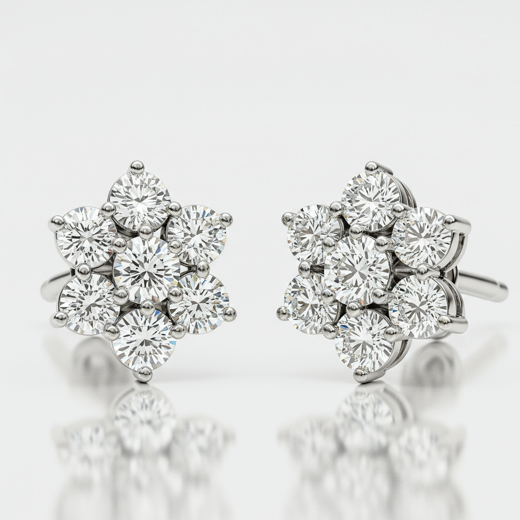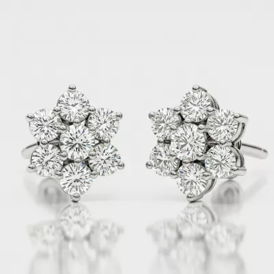 The pressing earrings exemplify minimalist luxury, featuring a tightly packed arrangement of brilliant-cut diamonds. Crafted in lustrous 18KT white gold, the design creates the illusion of a single, large, flawless stone head. These secure stud earrings offer unparalleled sparkle suitable for both daily wear and sophisticated evening ensembles. They are a timeless addition to any fine jewelry collection, designed for lasting brilliance and comfort.
