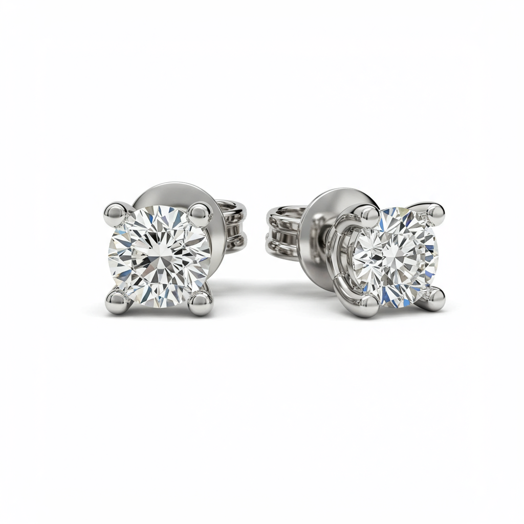 These real diamond earrings embody timeless elegance, featuring two perfectly matched round brilliant diamonds secured in robust three-prong settings. Crafted in luminous 18KT white gold, the high-clarity stones exhibit exceptional fire and brilliance, capturing light from every angle. With a total weight of 1.20 carats, these sophisticated solitaire studs are designed for both everyday luxury and significant occasions. They serve as the quintessential foundation piece for any high-end jewelry collection.