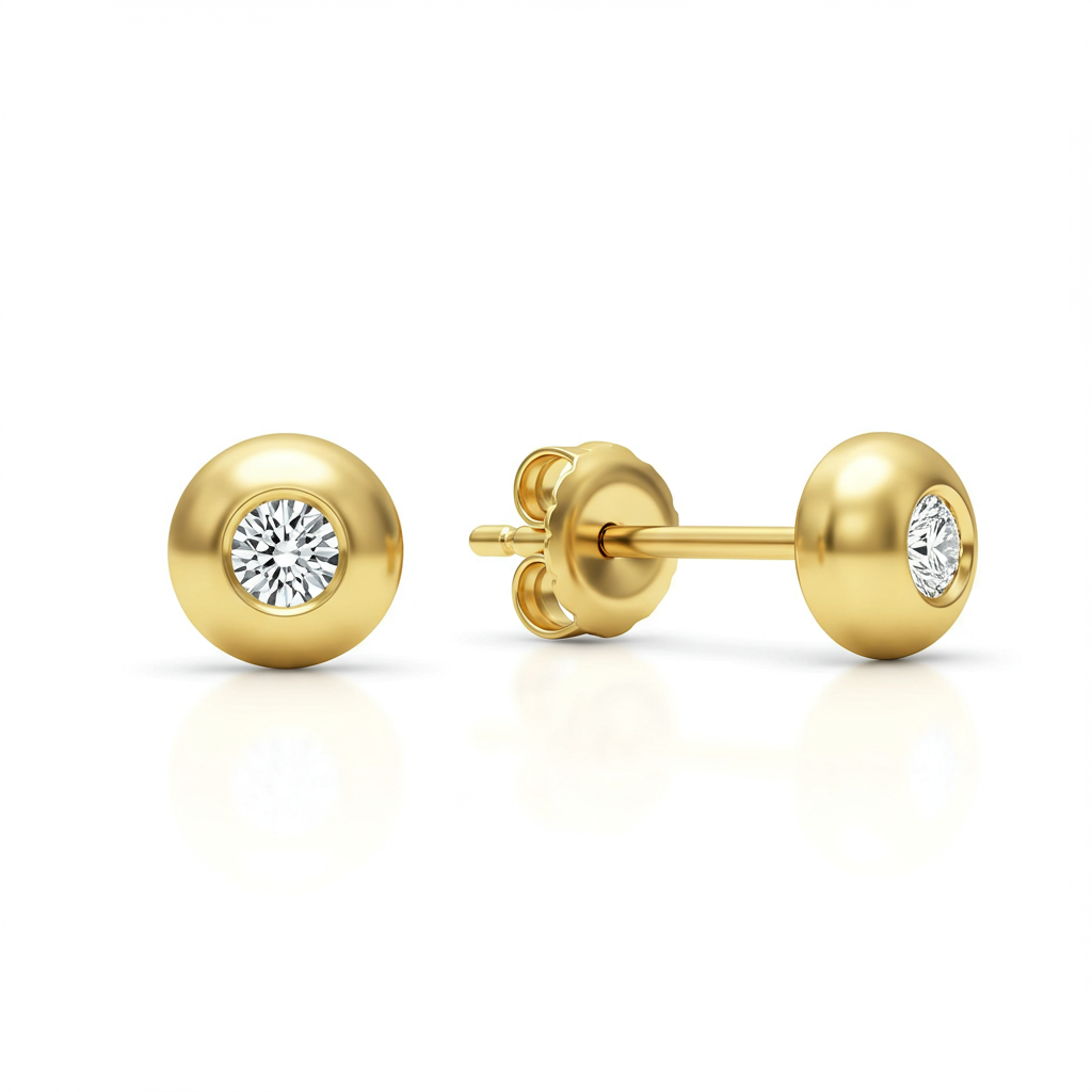 These delightful small gold earrings are meticulously crafted in radiant 18KT yellow gold, offering a secure and comfortable fit perfect for young wearers. Each stud features a tiny, brilliant-cut diamond, carefully chosen for its exceptional VVS clarity and G color. Designed for durability and daily elegance, these timeless studs make a beautiful first piece of fine jewelry. Their delicate sizing ensures subtle sparkle without being overwhelming.