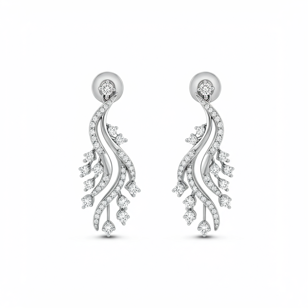 These exquisite diamond drop earrings exemplify timeless elegance, featuring a delicate array of brilliant round diamonds set in lustrous 18KT white gold. The design showcases a fluid linear arrangement that captures and reflects light with every subtle movement. Perfect for elevating evening wear or adding sophisticated sparkle to professional attire, they offer unmatched brilliance and craftsmanship. These earrings are a quintessential expression of modern luxury and high jewelry design.