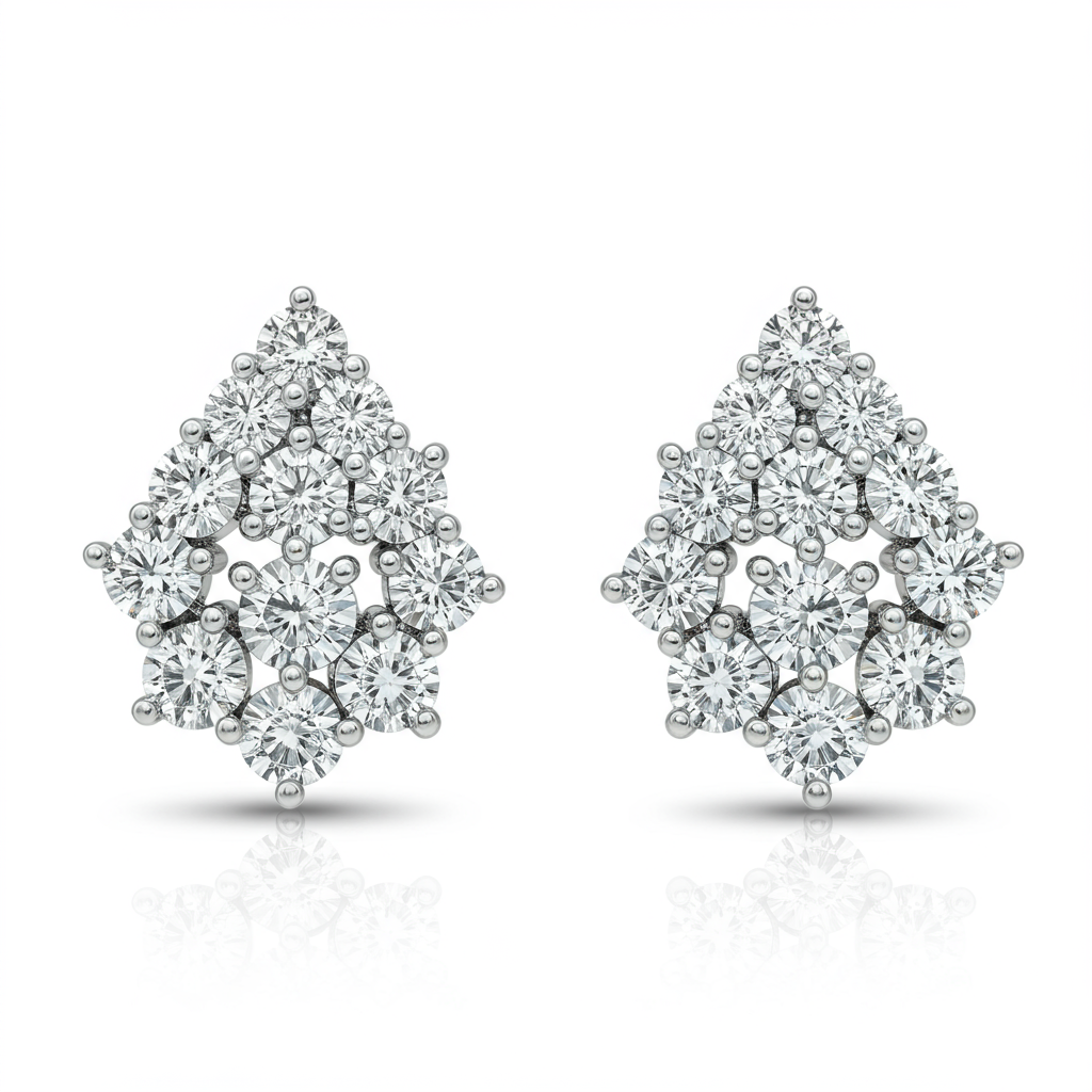 These unique cluster stud earrings define modern luxury, showcasing an asymmetric abstract design that catches light from every angle. Crafted in lustrous 18KT white gold, the earrings are meticulously set with sixty-four dazzling VVS round diamonds. This pair offers an avant-garde elegance, making a striking statement for both formal events and sophisticated daily wear. They represent a perfect fusion of artistry and high jewelry craftsmanship.